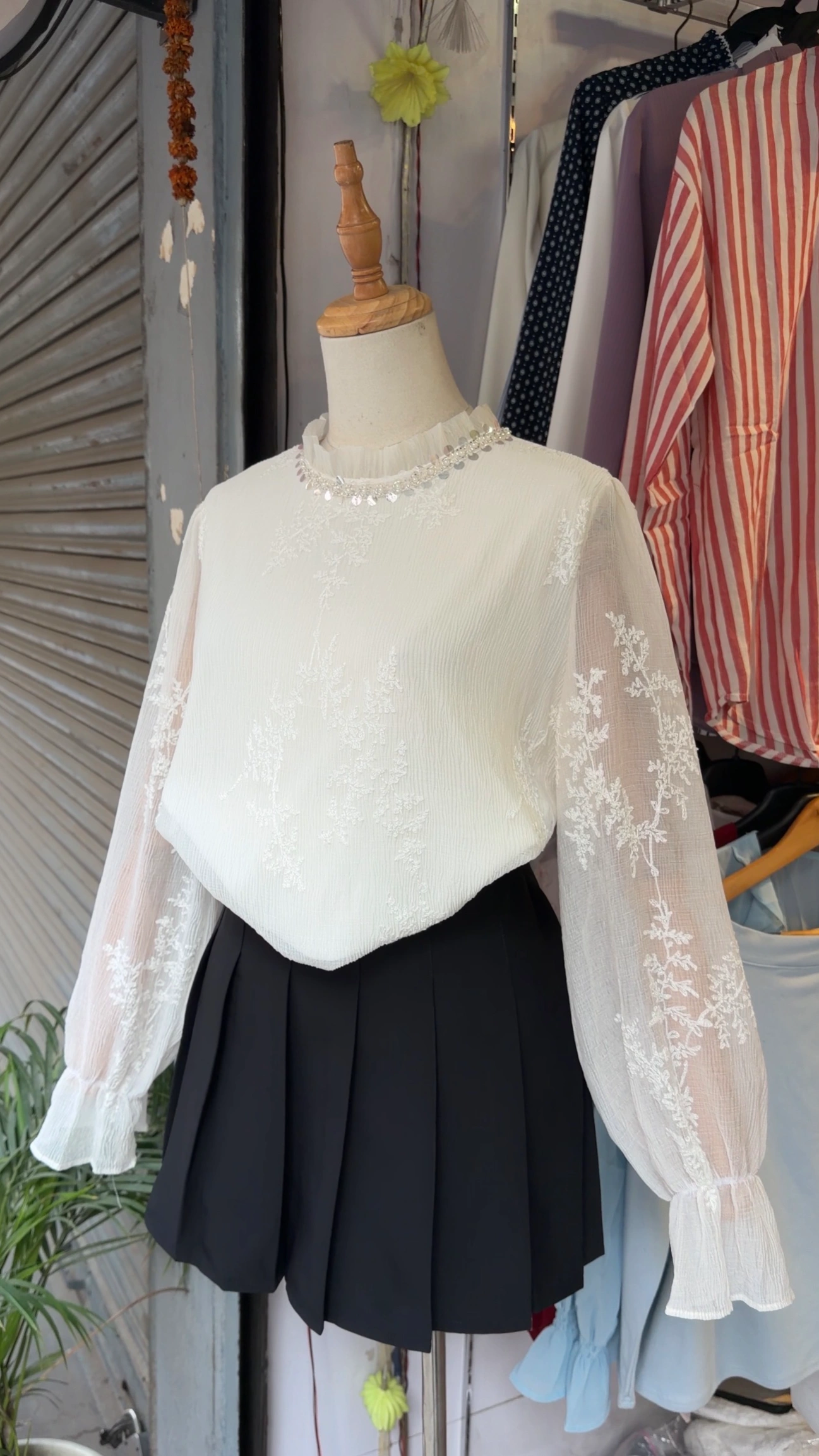 Net embroidery top