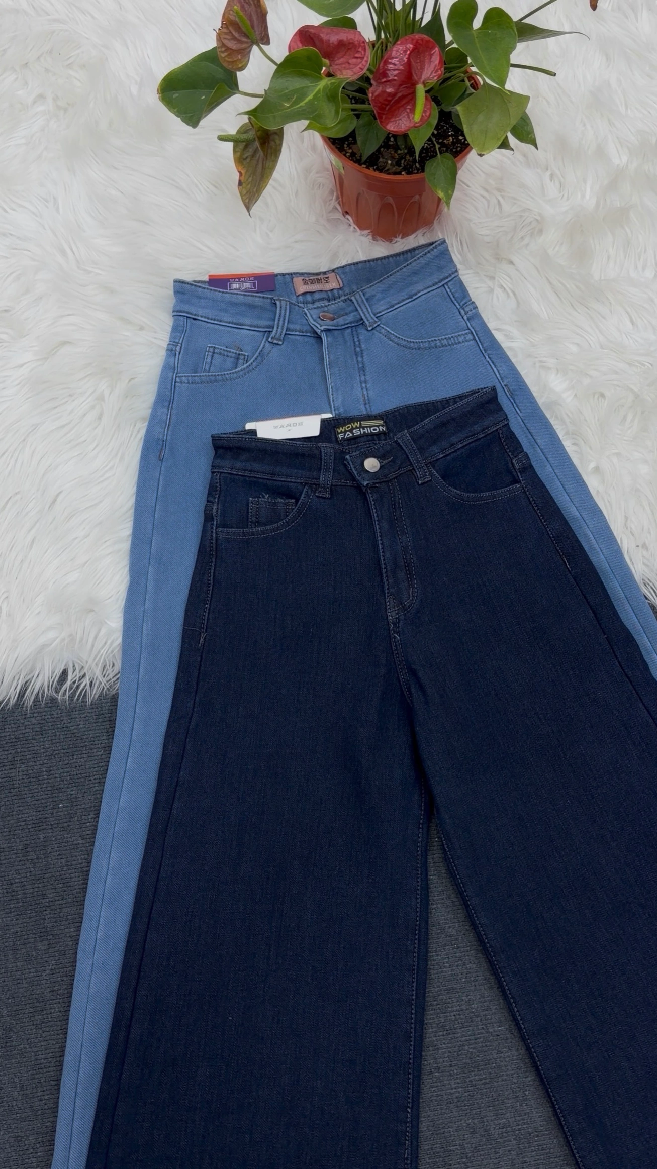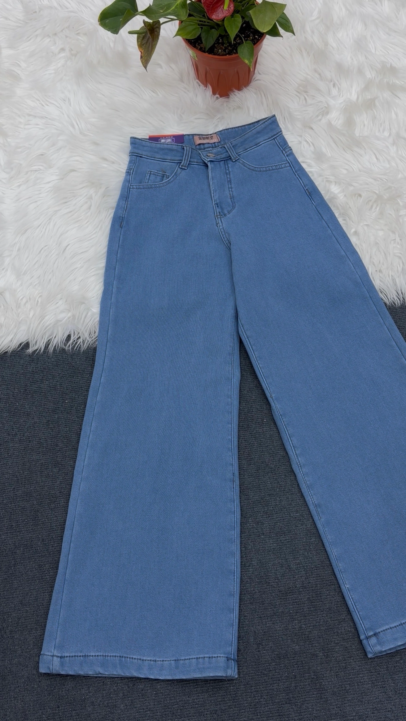 Denim pant with fur inside