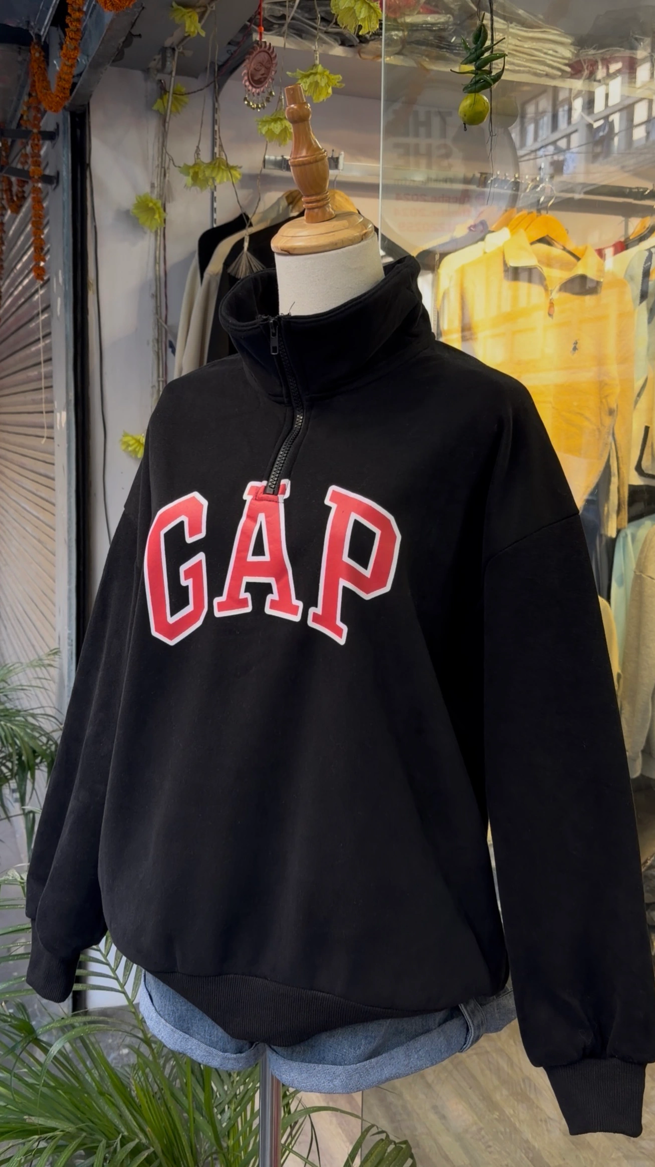 Half zipper sweatshirt with fur inside