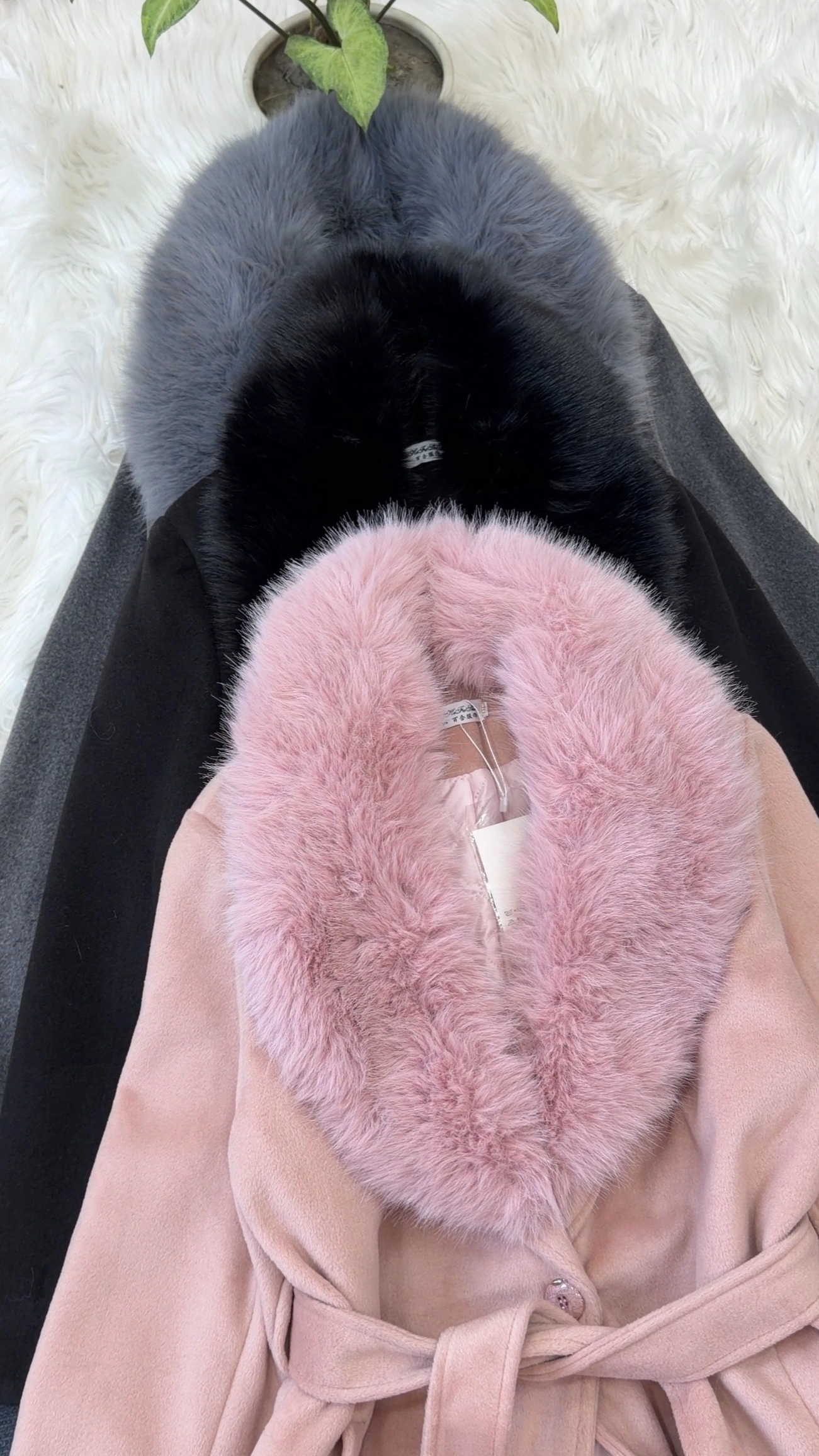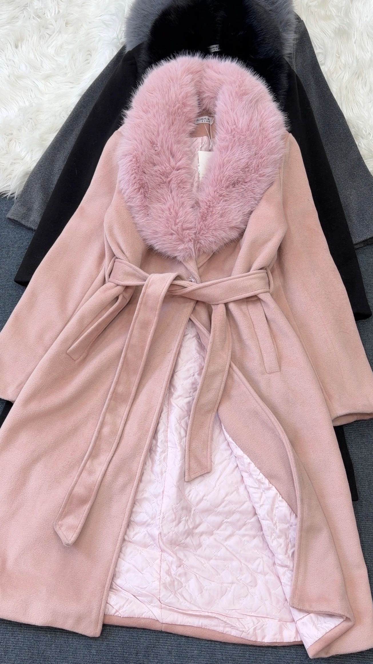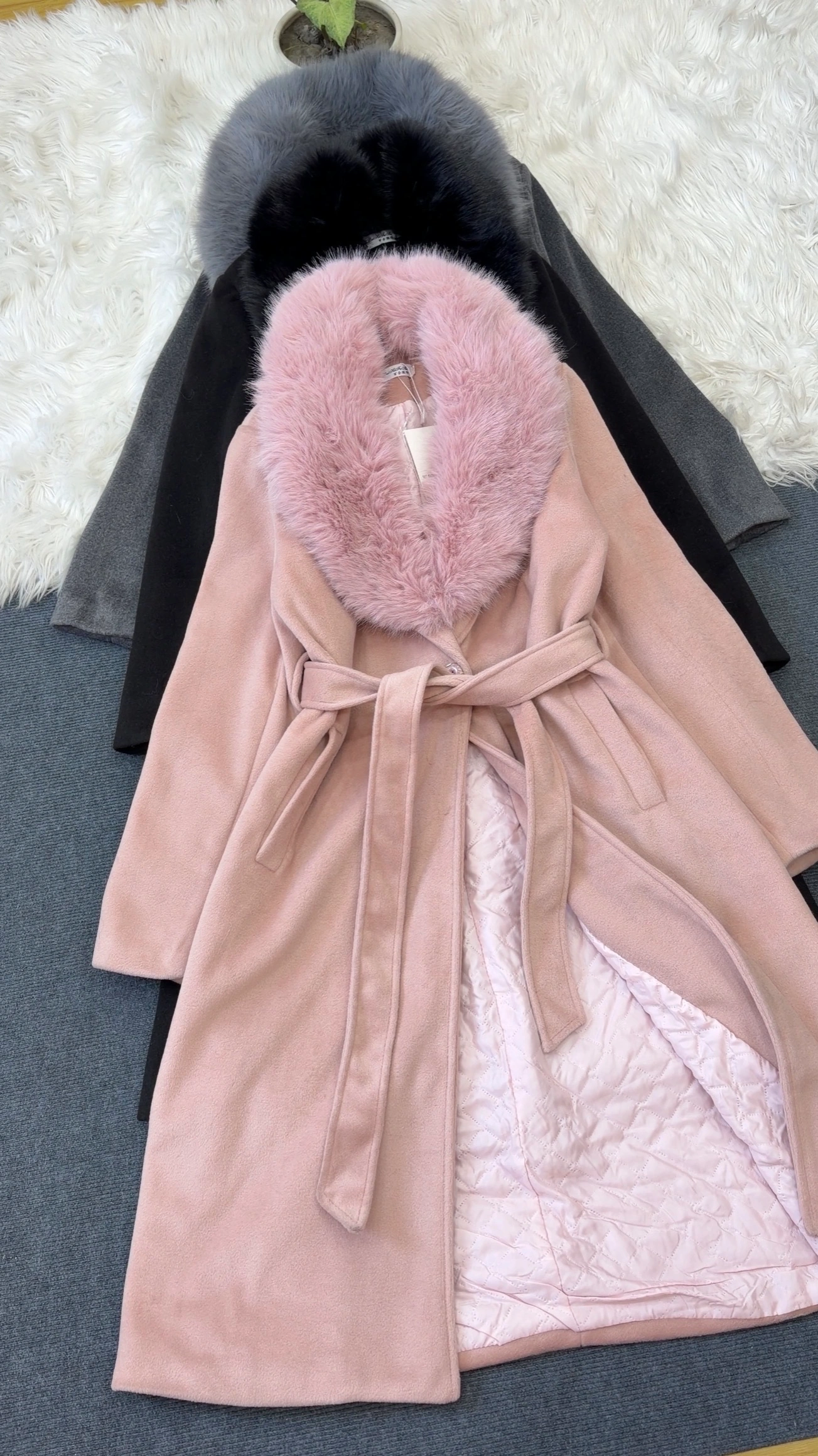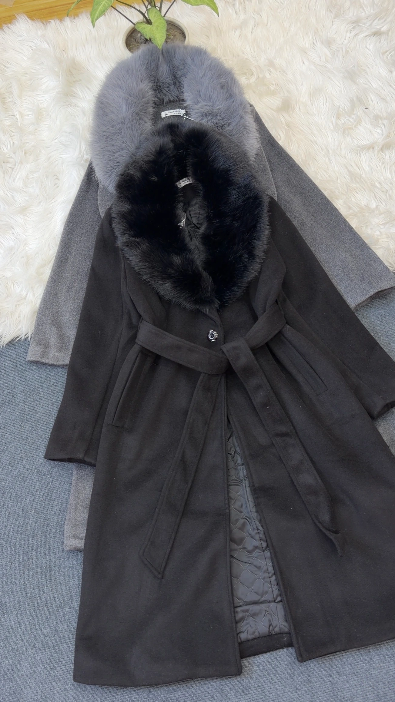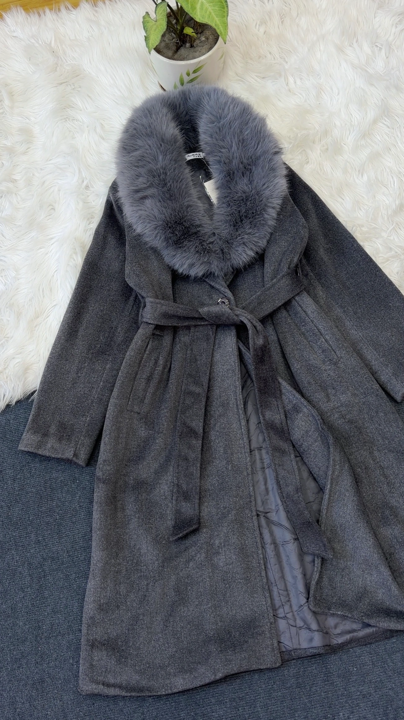 Woolen coat with detachable fur in neck