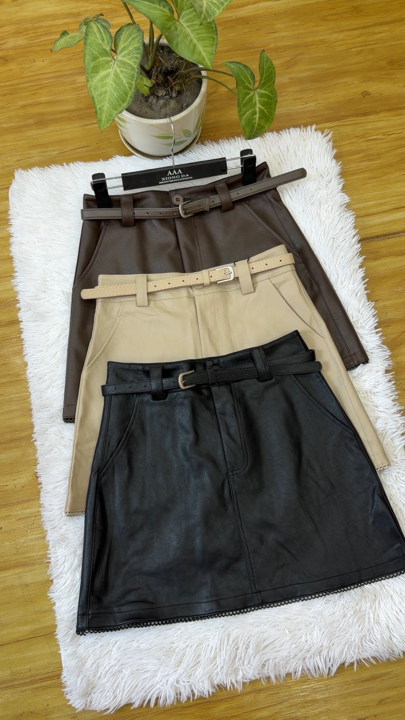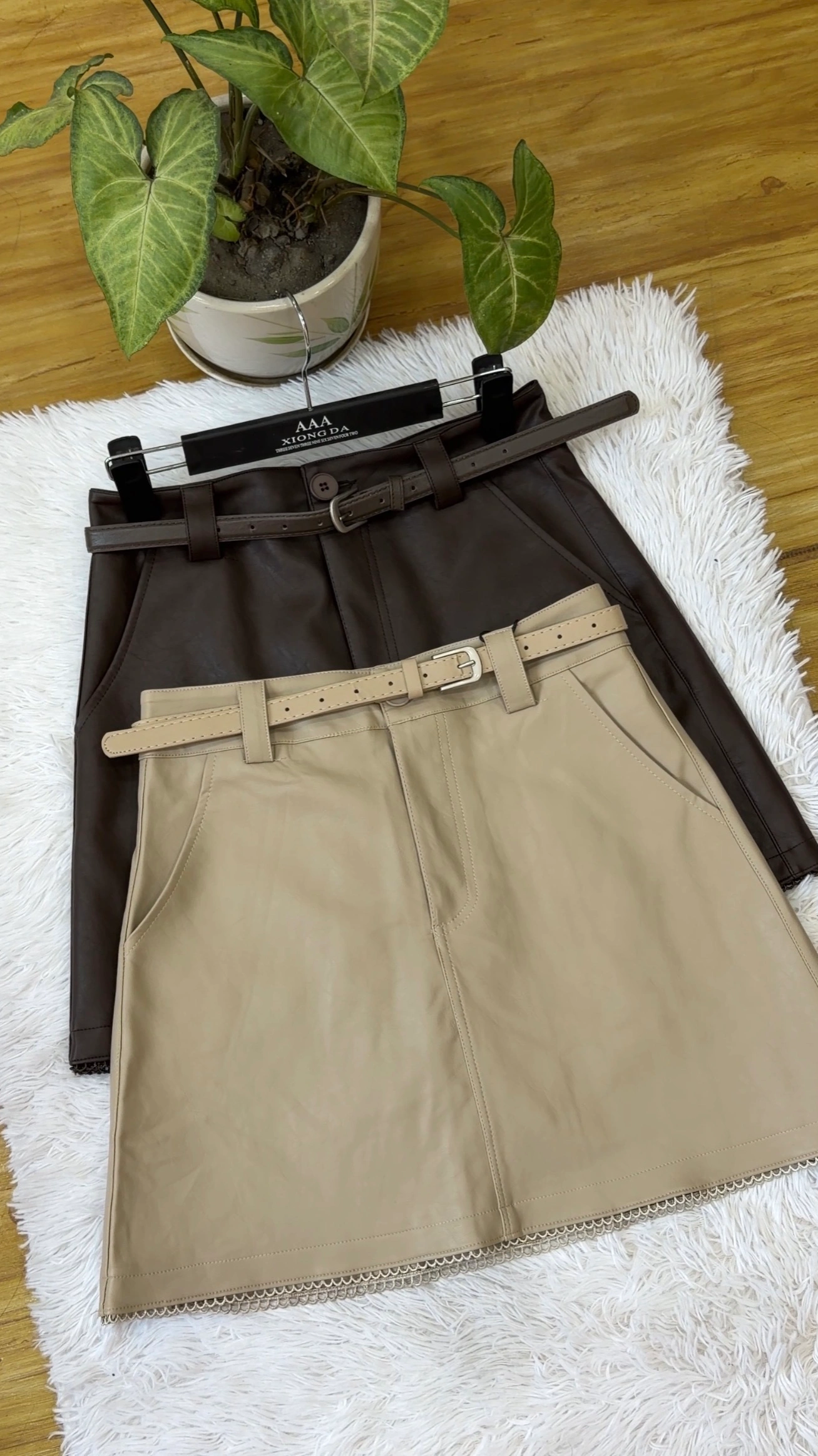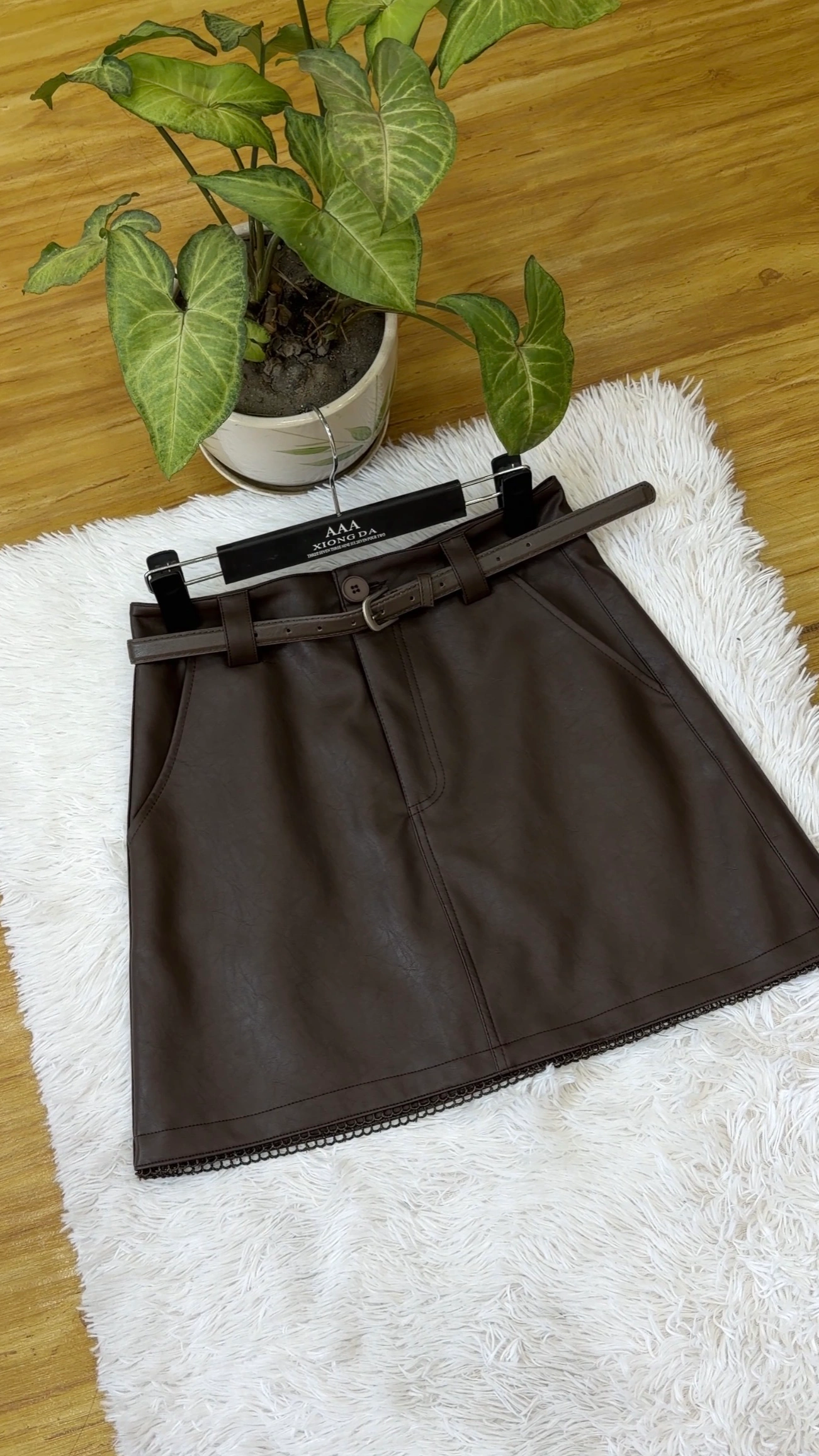 Leather skirt with belt