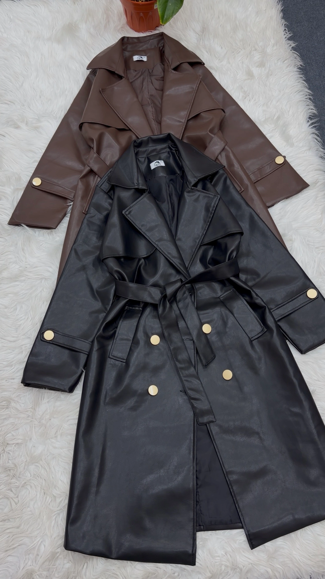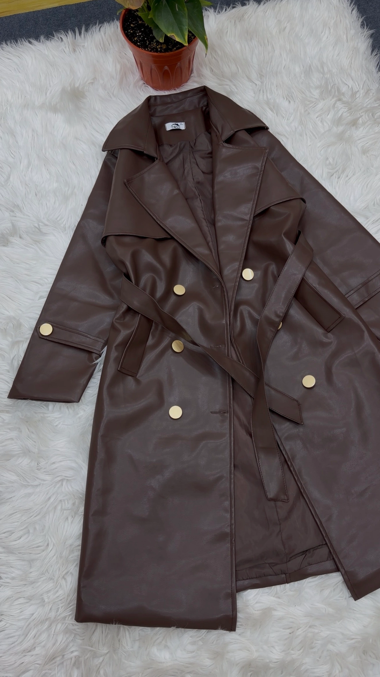 Leather long coat