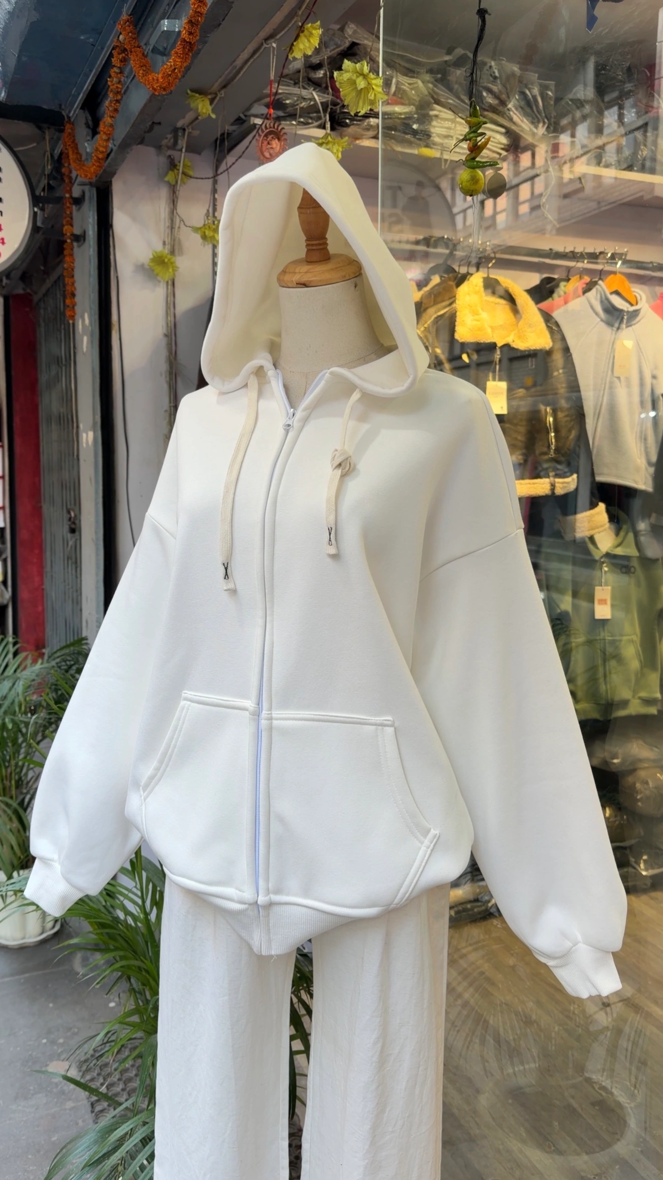 White hoodie with fur